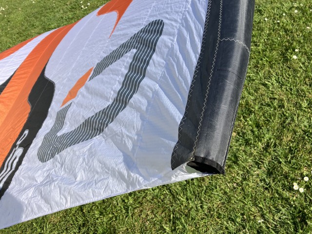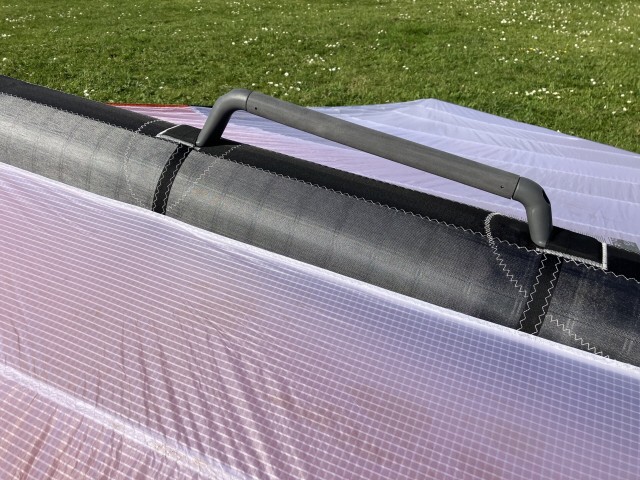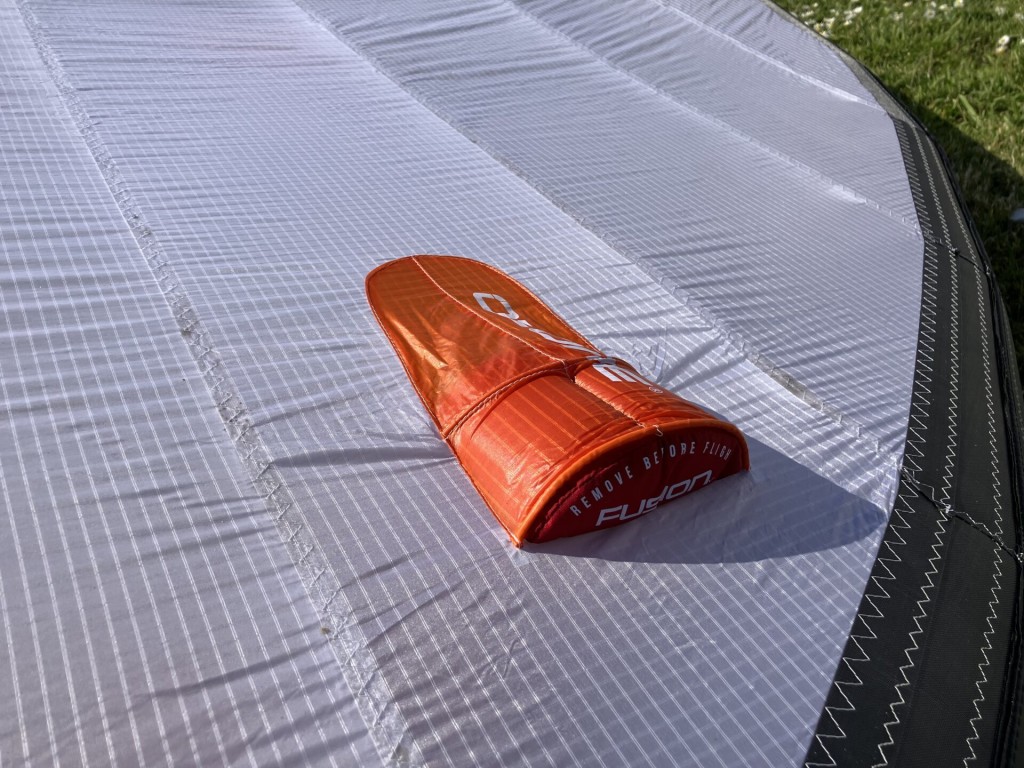 The Fusion wing presented the most exciting wing unboxing experience thus far, with so many construction details associated with the double skin format to look over. The initial observation was the aesthetic similarities to the Ozone Flux. A similar leading edge outline from the same Ozone ‘Performance Dacron’ material (lighter and stiffer than regular Dacron) with the same eva-covered hard handles. These handles are permanently fixed in position from now on, and the stitched attachment methodology appears to be heavily reinforced, so I’d expect a stiff construction that delivers plenty of control and response.