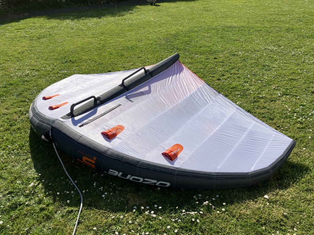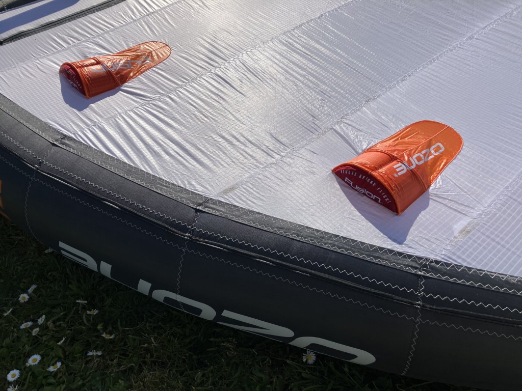 As often happens on new gear, it wasn’t long before I’d crashed, which allowed me to test the water uptake of the double skin design and the efficacy of the small wingtip drain ports. I was surprised by how little water was captured whilst the wing was dangling on the leash in the water, whilst handling the wing in preparation for take-off and during flat water crashes. In these situations, I can’t see there ever being enough water in the wing to have a significantly detrimental impact on its flight, assuming it is being used in enough wind in which you can get on foil. The water drains quickly when you re-engage the wing and have it flying ready for take-off. The only scenario I would be worried about is consecutive crashes in waves, perhaps followed by a lull in the wind. I can imagine the additional weight, combined with the lack of wind, could increase the difficulty of draining and slow down recovery and takeoff. Ozone doesn’t market the Fusion as the first choice of wings for the waves anyway, and only time will tell whether the double skin construction will handle a heavy break!
