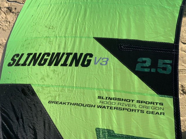 After the success of the Slingwing V2, I was interested & excited to get my hands on the V3. I had specifically requested the 2.5m version as I wanted to test my own & the limits of the equipment in this incredible new sport of ours. Pumping up the wing to take photos made me realise just how small the wing was, was it going to lift me out of the water?