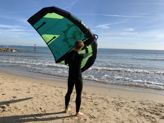 Due to the short time I had this wing and the extremely high winds needed to use it I only got one session in, but what a session it was! Cross shore 40 knot+ winds with big rolling sets coming along a long sandbar. The 2.5m size felt justified as I rigged whilst getting sandblasted on the beach, I felt sorry for the few poor souls that were attempting to go out on their 4-meter wings. I used a 45L sinker board and 1300cm2 foil.