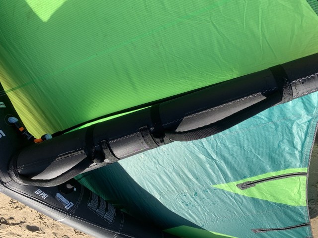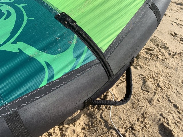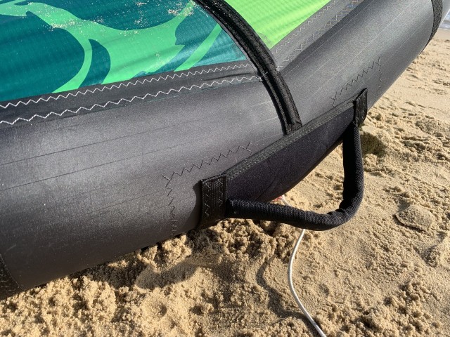 The elongated handles are a welcome addition, the main reason being that tacks and gybes are easier to land when you can grab a bigger handle. It is good to be able to make adjustments along the handle to change the profile of the wing in relation to the wind. A Large diameter leading edge and tighter canopy were noticeable even in these conditions, the wing felt rigid & controllable despite the powerful gusts.