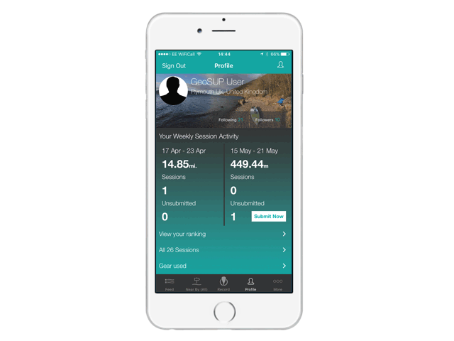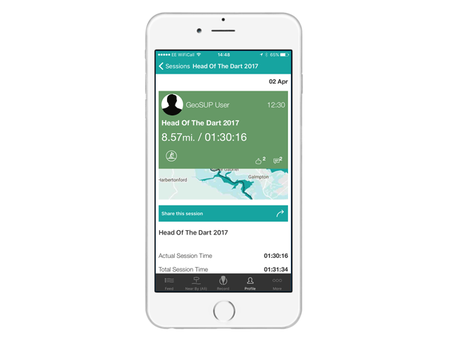 • Connect with other paddleboarders and see their GeoSUP sessions in the feed.