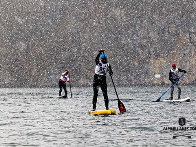 Every year, Paddlers join the GlaGla race and paddle in the Alps in the middle of winter, on a lake at 6° c!