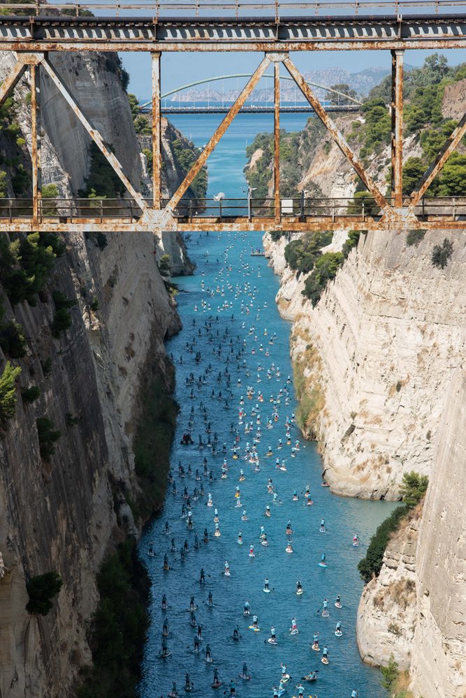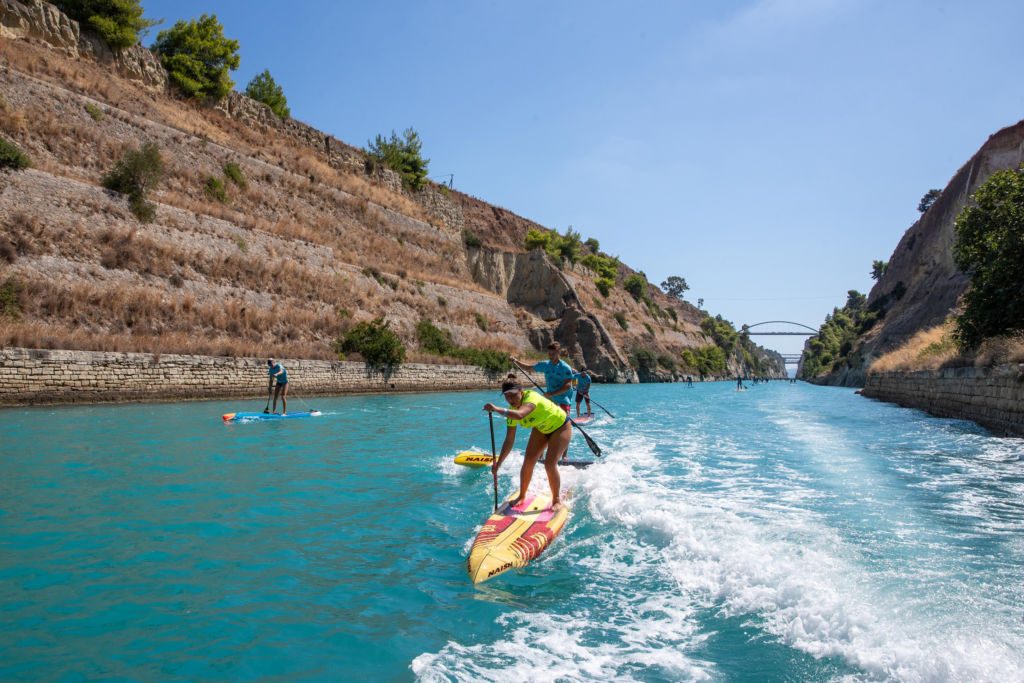 The 530 SUPers of the 9th Corinth Canal Crossing felt the awe of how small they were in front of the canal when they stood between its 80 m massive walls. There, the memory of people digging by hand this extraordinary project linked the history with the present and everyone admired the view with a new perspective.