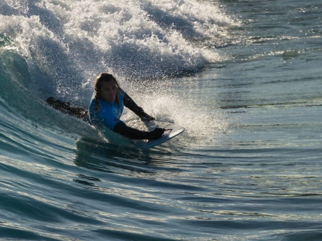 Every surfer pushed their upper limits. Natasha Davies took on the advanced wave setting for the first time, and what a take-off she handled. Her surfing was slick.