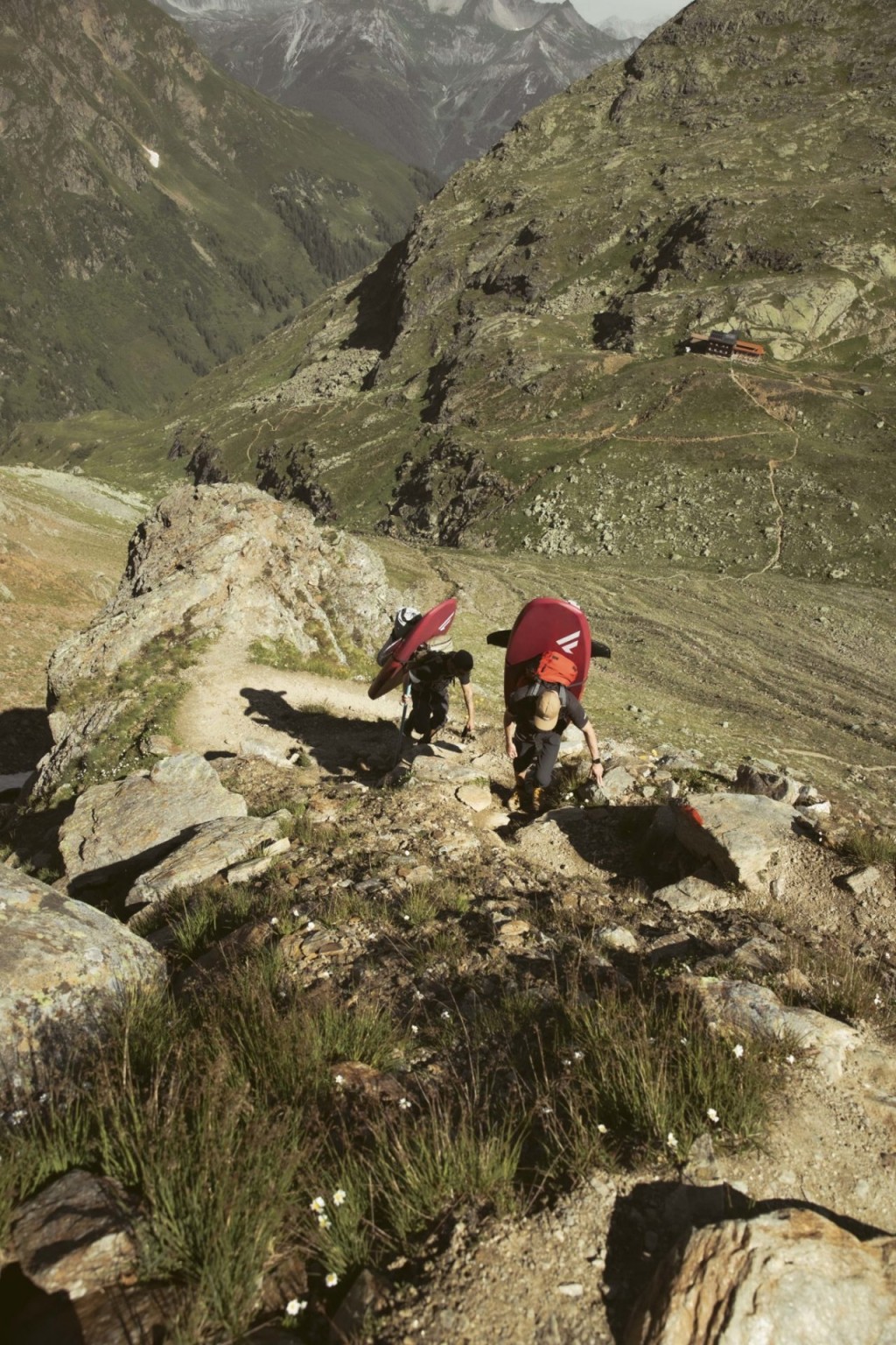 Summer came along this year, and it was different from the previous years. Travelling wasn’t possible or enjoyable, and we started to look closer into spots that we could have a session at, at home in Austria. Covid times made us think about what projects we could start right at home. So we figured why not look for the highest lake in Austria’s mountains and try to wing up there. It was all pretty spontaneous, and after a few days of planning our route, we were up there already.
