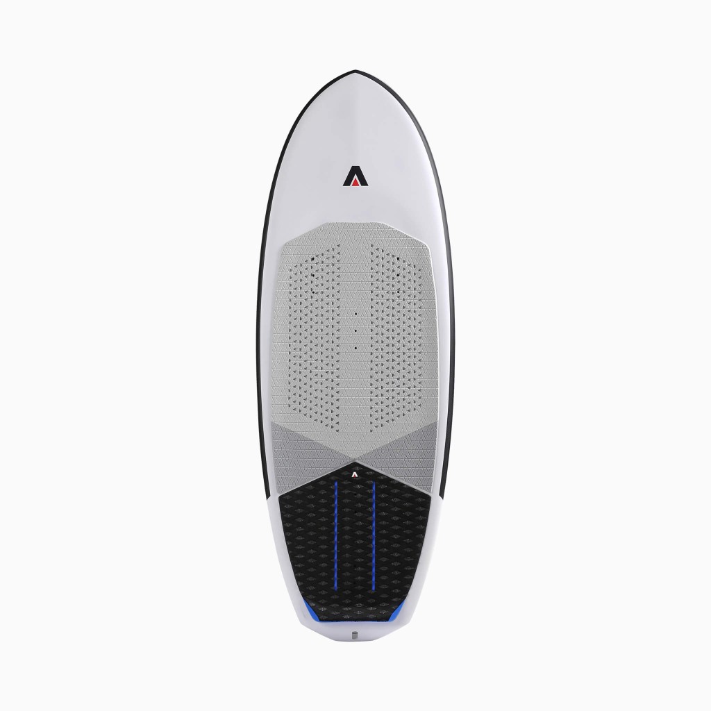 The Surf’s deck grip is tailored specifically to provide maximum control and comfort to enable your style in the surf. Similar in feel to the deck grip on our other boards, this design features unique micro-cutouts through the main section of the grip that are grippy enough to feel securely locked in for critical strapless manoeuvres but are still flat enough for easy foot repositioning throughout your ride. A full-width kick pad at the rear sports extra traction and markings to indicate the foil track placement underneath. Holes in the deck grip facilitate easy access to footstrap screw inserts.