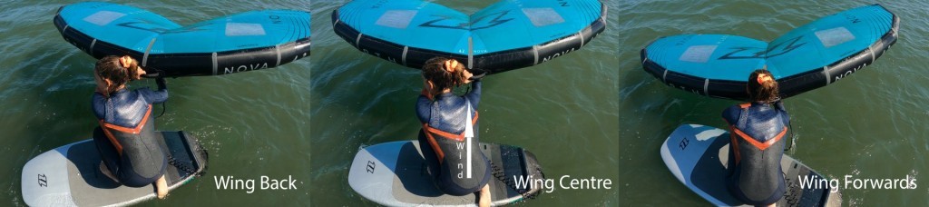 Check Your Bearings In this position you can manoeuvre the board. If you move the wing back by pushing your arms back towards the tail of the board, the nose will turn up into the wind. If you move the wing forwards, pushing your hands towards the nose of the board, the nose will turn away from the wind. Bring the wing back to centre and the board will be back across the wind. Another concept which sounds simple, but well worth practicing as you’ll be using this skill once on the board and once on the foil.