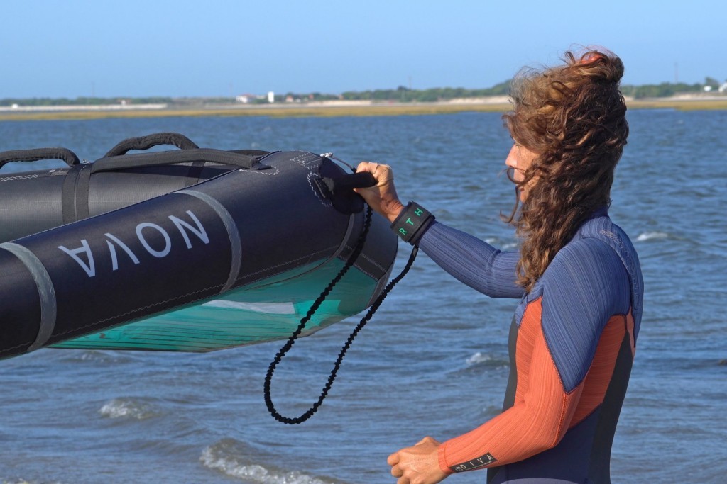 Wrist Leash Wear it on your dominant hand. When you’re not holding the Wing, you’ll feel where it is, and as it’s your more coordinated hand you’ll find it easier to untangle. When you’re splashing around in the water it’s easy to lift the leash over the board before you get on.