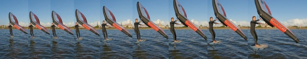 - Narrower toeside stance. Same as last time! A narrower stance will put you over the foil’s balance point. This means that when you move your feet, you’ll disturb the board less, and in turn, the board won’t surprise you. This will give you more time to place your feet, and you won’t need to rush, giving you a more consistent result.