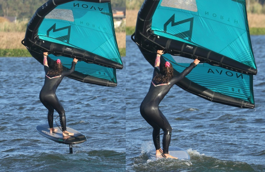 There are caveats here. Firstly, where you position your feet. If they’re both too far forwards you can’t rise. Then again, you’ll most likely nosedive as you try to accelerate. If they’re too far back, you won’t be able to bear away and accelerate as you’ll keep sinking the tail and the board will want to pivot upwind. And finally, if your wing is placed absolutely in the wrong place you might not lift or you might not be able to keep the foil down as you accelerate, but if its somewhere around the middle and designed for winging it should work. If your board is trimmed correctly while accelerating it will work.